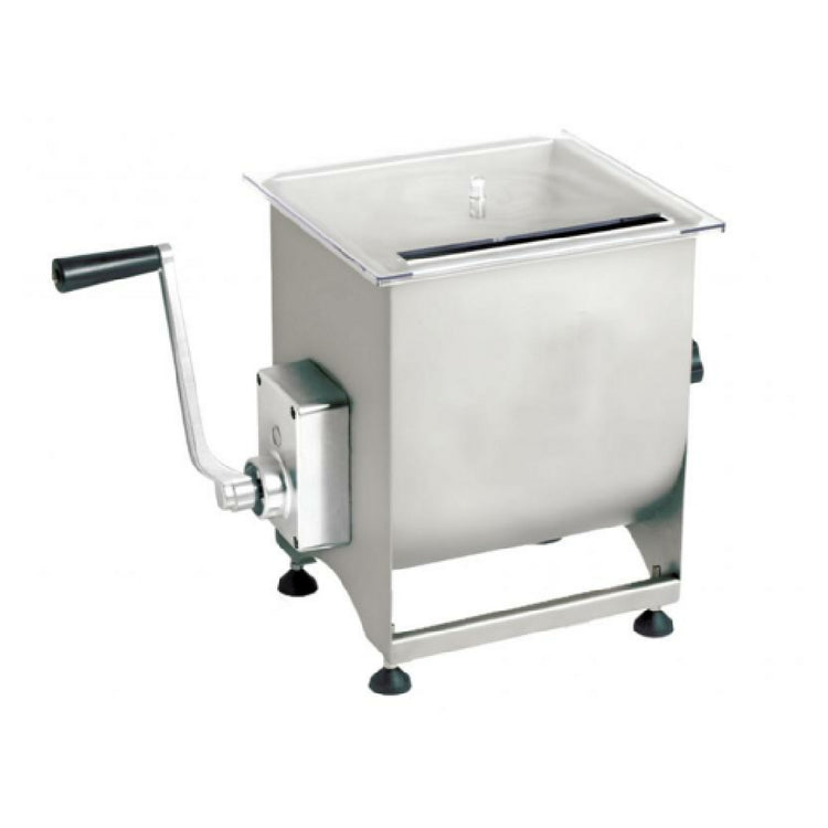 The Omcan 13157 (13157) Meat Mixer stands out in the field of manual meat processing equipment with its substantial 44 lb. working capacity, catering effectively to a variety of market segments, including small to medium-sized butcher shops, commercial kitchens, and artisanal food producers. Crafted with precision in Italy, this mixer incorporates a removable paddle, enhancing its versatility and ease of maintenance. The manual operation of this mixer not only provides a reliable and consistent mixing process but also ensures control over the mixing speed and intensity, which is crucial for achieving the desired texture and consistency in meat products. The Omcan 13157's design facilitates straightforward disassembly, simplifying cleaning and sanitation procedures, which is a vital aspect for maintaining food safety standards. Its robust construction promises durability, making it a long-term asset in any meat processing setup. This meat mixer, with its blend of functionality, capacity, and build quality, is a strategic choice for professionals seeking efficiency and reliability in their meat preparation processes. The manufacturing location in Italy further reinforces its quality, aligning with the high standards associated with Italian craftsmanship in food processing equipment.