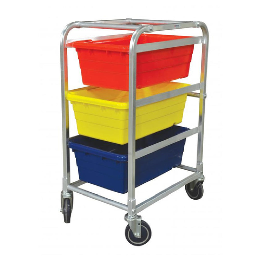 The Omcan 13493 (13493) Lug Rack Mobile Half Size is a highly functional storage solution tailored for professionals in the foodservice and processing industry. This mobile unit features open sides and three welded angle slides, providing robust support for storing up to three lugs securely. With a convenient 10-inch spacing between slides, it accommodates various lug sizes, enhancing its versatility. Crafted from durable aluminum, the lug rack ensures longevity and resistance to corrosion, even in demanding environments. The rack's mobility is bolstered by 5-inch casters, facilitating smooth movement across different workspaces. This design is particularly beneficial for kitchens, processing plants, and distribution centers where efficient space management is critical. The unit is shipped knocked down (KD), optimizing shipping efficiency and minimizing assembly complexity. The Omcan 13493 Lug Rack Mobile Half Size is engineered to meet the stringent requirements of diverse market segments, offering an optimal blend of practicality and durability. Its technical design and quality construction make it an indispensable asset for operations that prioritize hygienic and organized storage solutions.