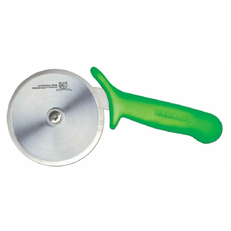 The Omcan 18841 (18841) Pizza Cutter 4"- R-style is an essential tool for any culinary professional seeking precision and efficiency in pizza preparation. This pizza cutter is characterized by its 4-inch cutting wheel, which is optimal for slicing through a variety of pizza crusts with ease. The R-style design of the cutter ensures a smooth rolling action, reducing hand fatigue during extended use. A distinctive feature of this pizza cutter is its green handle, which not only adds a pop of color but also offers a comfortable grip, enhancing the user's control and safety. This ergonomic design is beneficial for both high-volume commercial kitchens and smaller artisanal pizzerias, where consistent performance and durability are paramount. The Omcan 18841 pizza cutter’s construction is centered on providing a reliable and practical cutting solution, making it valuable for professional chefs and home cooking enthusiasts alike. Its straightforward yet effective design underscores Omcan USA's commitment to quality and functionality in kitchen tools.