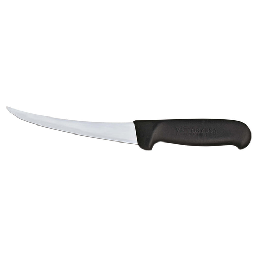 The Omcan 21181-21181 Boning Knife 6" Curved is a specialized tool crafted for precision and efficiency in professional kitchens. With a 6-inch curved, thin blade, this knife is expertly designed to tackle intricate boning tasks. Made from high-quality stainless steel, the blade ensures durability and resistance to corrosion, making it a reliable choice for chefs and butchers alike. The black handle is ergonomically designed to provide a comfortable grip, offering enhanced control and minimizing hand fatigue during prolonged use. This knife is a special order item with a minimum quantity requirement of 600 pieces, highlighting its exclusivity and bespoke appeal for businesses looking to equip their culinary teams with top-tier tools. Manufactured by Victory USA, the Omcan 21181 Boning Knife stands out in the market for its meticulous craftsmanship and attention to detail. Whether utilized in large-scale meat processing facilities or gourmet restaurants, this knife is engineered to deliver exceptional performance, making it an indispensable asset in any professional kitchen setting.
