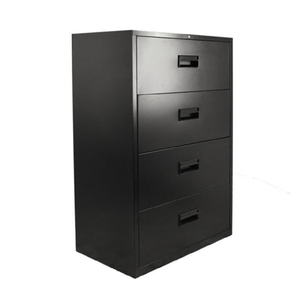 The Omcan 21653 (21653) Lateral Legal Filing Cabinet 36"W Four Drawers is a highly efficient storage solution tailored for the meticulous organization of legal documents, making it an essential asset across various industry segments that require structured document management. With its precise dimensions of 36 inches in width, this cabinet adeptly accommodates legal-sized files, ensuring optimal use of office space. Featuring a robust four-drawer configuration, the cabinet enhances accessibility and organizational efficiency, enabling users to categorize and retrieve files with ease. The sophisticated black finish aligns with diverse office decors, offering a professional and sleek appearance. Notably, the cabinet is shipped on a pallet, ensuring safe and convenient delivery, while underscoring Omcan USA's commitment to quality. This filing cabinet is not just a storage unit but a strategic organizational tool designed to meet the demanding needs of modern offices, legal firms, and any environment that values systematic document handling. Its design and functionality reinforce a seamless workflow, contributing to an organized and productive work setting.