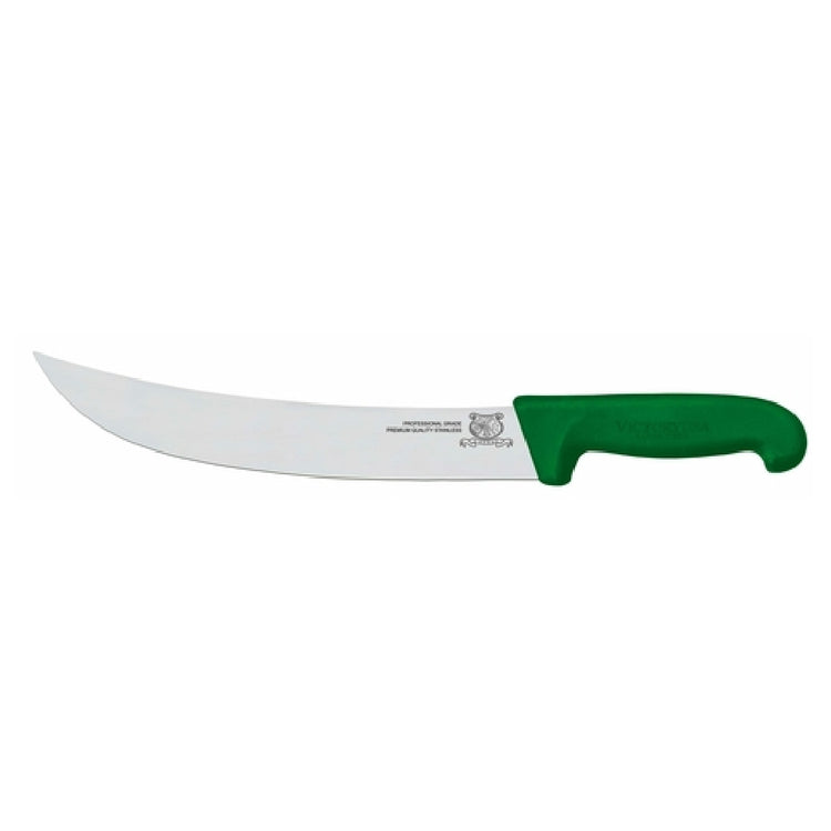 The Omcan 23887 Steak Knife 12" Curved Blade stands out in the culinary industry as a precision tool designed for both professional chefs and home cooks. This steak knife, with its 12-inch curved blade, is crafted from durable stainless steel, ensuring long-lasting sharpness and resilience in demanding kitchen environments. The curved blade design enhances cutting efficiency, allowing for smooth, effortless slicing through various types of meats. The knife features a Super Fiber green handle, providing an ergonomic grip that ensures comfort and safety during prolonged use. This green handle not only adds a vibrant aesthetic but also aids in easy identification among other kitchen tools. Ideal for steakhouses, restaurants, and culinary enthusiasts, the Omcan 23887 Steak Knife offers a combination of superior craftsmanship and innovative design. Its unique attributes make it a versatile choice for different segments within the food service industry, from high-volume commercial kitchens to intimate home dining experiences. By integrating advanced materials and a thoughtful design, this steak knife embodies precision and quality, making it a valuable asset for enhancing both presentation and preparation of fine meats. The Omcan 23887 is a testament to Omcan USA's commitment to delivering high-performance kitchen tools.