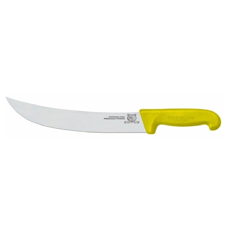 The Omcan 23889 - 23889 Steak Knife 12" Curved Blade is a premium utensil designed to meet the demands of professionals in the culinary industry. This steak knife boasts a 12-inch curved blade, expertly crafted from stainless steel, ensuring durability and resistance to corrosion, thus providing long-lasting performance in any kitchen setting. The distinctive curve of the blade allows for improved slicing efficiency, making it ideal for cutting through various cuts of meat with precision. In addition to its superior blade, the knife is equipped with a Super Fiber yellow handle, offering a comfortable grip and enhanced control during use. The ergonomic design of the handle not only reduces hand fatigue but also adds a splash of vibrant color to the kitchen environment, making it easily identifiable and reducing the risk of cross-contamination. This steak knife is perfect for steakhouses, upscale restaurants, and catering services seeking a reliable and high-quality cutting tool that enhances both functionality and aesthetics in food preparation. Its specialized design caters to diverse market needs, catering to chefs and culinary professionals who prioritize precision, longevity, and hygiene in their tools. With the Omcan 23889 - 23889 Steak Knife, experience a blend of innovation and practicality in every slice.