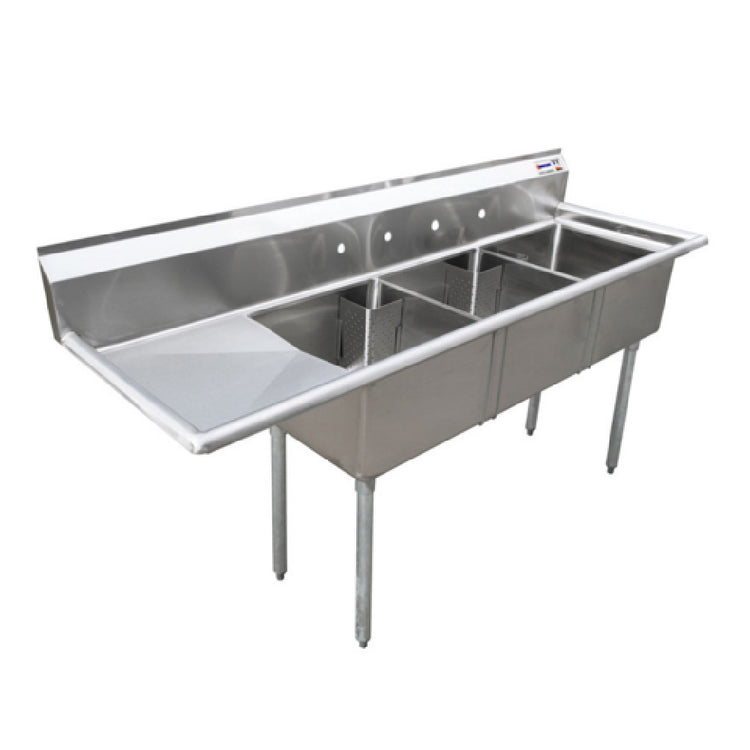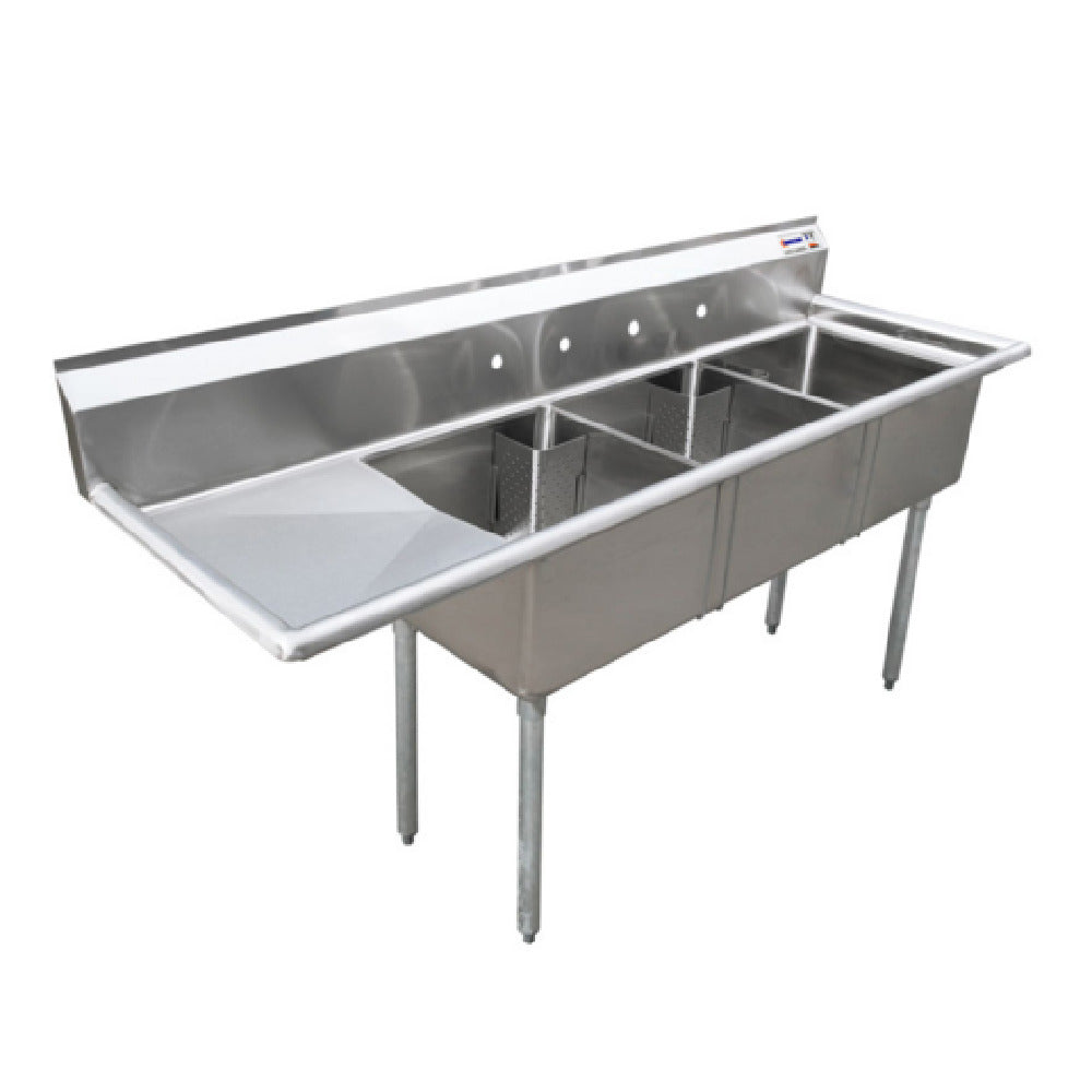 - Three spacious 24" x 24" x 14" bowls for efficient pot washing