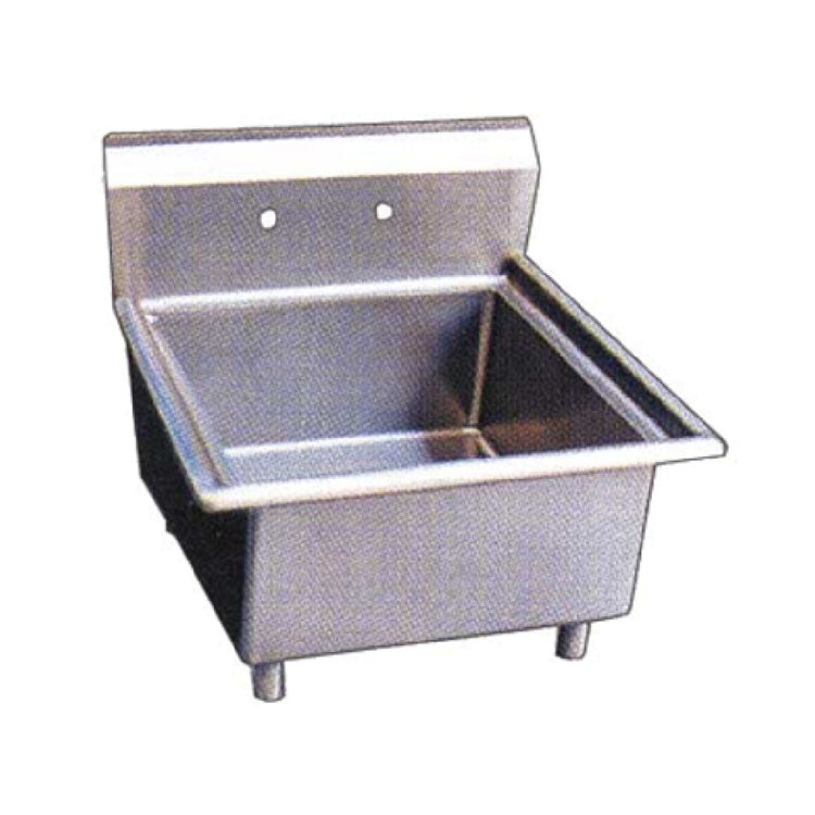 The Omcan 25262 (25262) Pot Sink is a meticulously designed unit featuring a single bowl measuring 21 inches front to back, 18 inches wide, and 14 inches deep, making it a versatile choice for various commercial kitchen environments. This pot sink comes equipped with 8-inch center faucet holes, allowing for easy installation of standard faucets. The 9-3/4-inch backsplash efficiently prevents water spillage onto the wall, maintaining cleanliness and hygiene standards. Its corner drains facilitate smooth drainage, enhancing the sink's functionality. Constructed from 18-gauge, 304 stainless steel, this pot sink promises durability and resistance to corrosion, catering to the rigorous demands of commercial settings. The sink is supported by galvanized legs with adjustable bullet feet, ensuring stability on uneven surfaces while providing flexibility in height adjustment. Meeting NSF standards, this pot sink underscores its commitment to safety and quality in food service operations. Although it does not include a drain board, the Omcan 25262 is shipped on a pallet for secure and easy transportation. This product's thoughtful design and robust construction make it an ideal solution for restaurants, hotels, and catering services requiring reliable and efficient kitchen solutions.