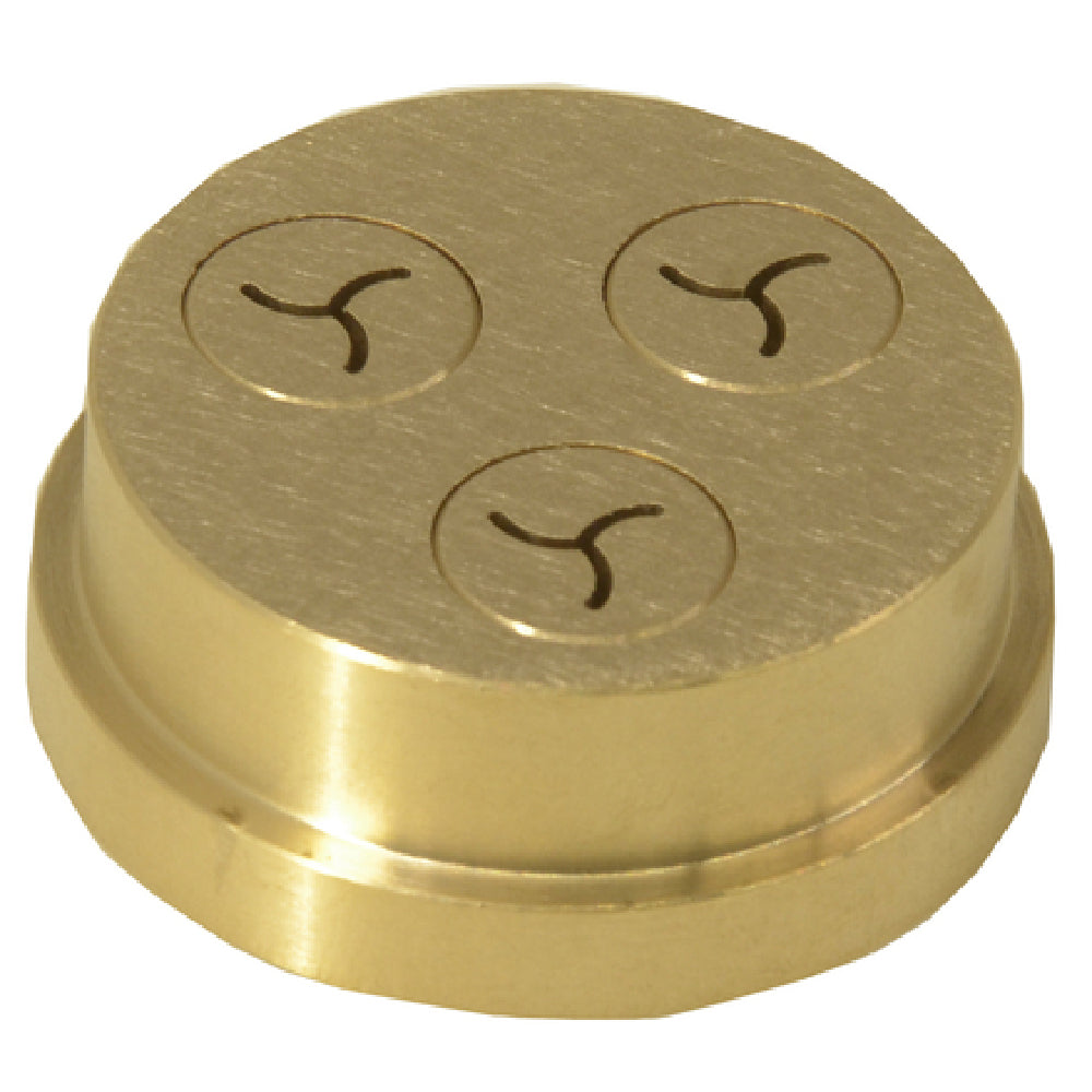 The Omcan 27208 (27208) #240 Fusilli Pasta Die 8.4mm (3) Wings is a precision-engineered tool designed for professional pasta production. This die, crafted from high-quality brass, is tailored to create fusilli pasta with a consistent diameter of 8.4mm, an essential specification for chefs and culinary artisans seeking uniformity in pasta texture and presentation. The inclusion of three wings in its design facilitates the production of traditional fusilli spirals, ensuring each pasta piece captures sauces and seasoning effectively, enhancing the culinary experience. This product is a key component within the food industry, particularly for pasta manufacturers and gourmet kitchens that prioritize quality and authenticity in their pasta offerings. The robust construction of the Omcan 27208 die ensures durability and longevity, making it a reliable choice for high-volume pasta production environments. Its compatibility with various pasta extrusion machines further underscores its versatility and utility in diverse culinary settings. Whether for a small artisanal pasta maker or a large-scale commercial operation, the Omcan 27208 is engineered to meet the stringent demands of consistency, efficiency, and quality in pasta production, making it an indispensable tool in the arsenal of pasta-making equipment.