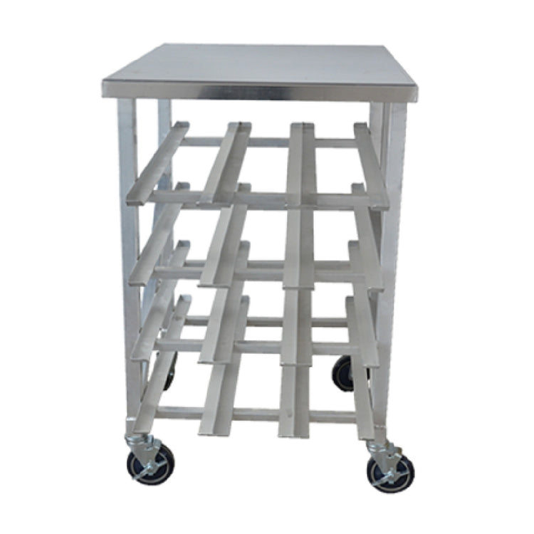The Omcan 27770 (27770) Can Rack is an industrial-grade storage solution designed for efficient organization and mobility in commercial kitchens. Featuring 4 layers and 12 rows, this can rack maximizes space and accessibility, making it ideal for food service businesses that require streamlined can storage. Crafted from durable stainless steel, the rack ensures longevity and resistance to corrosion, promising reliable performance in demanding environments. The unit's table top design offers additional workspace, enhancing its functionality within a kitchen setup. Equipped with 5-inch casters, the can rack is easily maneuverable, allowing it to be effortlessly repositioned as needed, which is particularly beneficial in dynamic kitchen layouts. Please note that lugs and trays are not included with this model, allowing for customization according to specific storage needs. The Omcan 27770 can rack is a valuable asset for restaurants, cafeterias, and catering services, providing a robust and versatile storage solution. Its thoughtful design and quality construction illustrate Omcan's commitment to providing practical and efficient products tailored to the needs of the food service industry. This can rack stands as a testament to durability and functionality, catering to diverse market segments seeking dependable storage solutions.