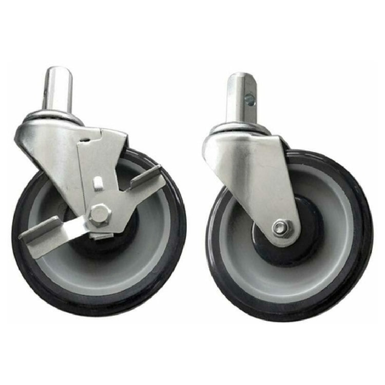 The Omcan 28637 (28637) Casters 5" Dia. X 1.25" For Pan & Lug Racks is an essential accessory for enhancing the functionality and mobility of pan and lug racks in various industrial settings. Crafted with precision, these casters boast a diameter of 5 inches and a width of 1.25 inches, designed to support the efficient transportation of racks across diverse surfaces. This set comprises four pieces, strategically including two casters with brakes and two without, offering versatility and control tailored to your specific operational needs. The inclusion of braking mechanisms ensures stability when stationary, a crucial feature for environments that demand precision and safety. These casters are particularly valuable in commercial kitchens, bakeries, and storage facilities, where ease of movement can significantly enhance workflow efficiency. The robust construction of the Omcan 28637 casters ensures durability and longevity, even under heavy usage, making them a cost-effective solution for businesses seeking reliable mobility options for their equipment. These casters are engineered to meet the high standards of performance and reliability expected in professional settings, providing a practical enhancement to pan and lug racks that supports seamless operations and adaptability in dynamic workspaces.