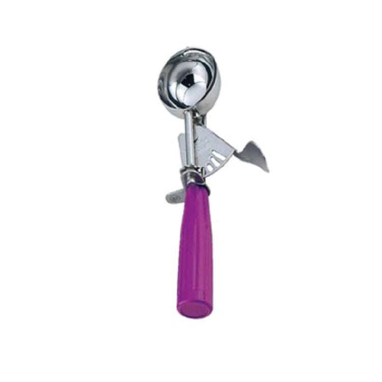 The Omcan 34848 (34848) Ice Cream Scoop is a highly efficient tool designed for precision and ease in food service environments. With a 3/4 oz. capacity, this stainless steel scoop is perfect for serving consistent portions of ice cream, making it ideal for ice cream parlors, restaurants, and cafeterias. The scoop features an orchid plastic handle, enhancing user comfort and grip during use. The stainless steel construction ensures durability and resistance to corrosion, making it a reliable choice for high-volume operations. Additionally, the minimum order quantity of 12 ensures that businesses have an adequate number of scoops to meet their operational demands. This product is particularly useful for establishments that require uniform serving sizes and desire a tool that combines both functionality and longevity. The Omcan 34848 is a versatile and practical solution for any commercial kitchen setting that prioritizes efficiency and precision in their serving tools.