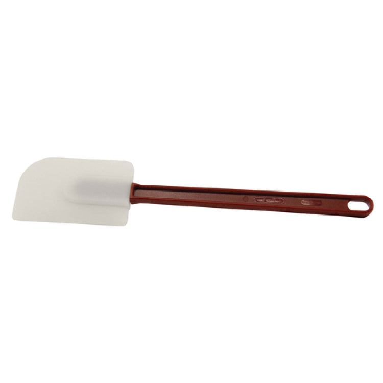 The Omcan 40573 (40573) Spatula is a versatile tool designed for both professional chefs and home cooks who value precision and durability. With a length of 14 inches, this spatula is engineered to handle a variety of kitchen tasks with ease. The white silicone head of the spatula is crafted for both flexibility and resilience, allowing for seamless scraping and mixing without scratching cookware surfaces. Its silicone head is not only heat resistant but also ensures that no residue is left behind, making it ideal for use with non-stick cookware. The spatula's red handle provides a comfortable and secure grip, reducing hand fatigue during prolonged use. This thoughtful design combines functionality with an aesthetic appeal, making it a practical addition to any kitchen environment. The Omcan 40573's durable construction ensures it can withstand the rigors of daily use in busy commercial kitchens or at home, making it an investment in quality. This spatula is particularly useful for those in the baking and culinary industries, where precision and reliability are paramount. With its robust features and thoughtful design, the Omcan 40573 Spatula exemplifies a commitment to quality and functionality, catering to a wide range of culinary needs.