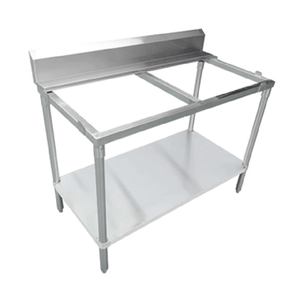 Omcan 41247 (41247) Polytop Table Frame 48"W X 24"D X 42"H Stainless Steel Frame is a robust and versatile piece of equipment designed for various professional settings. With its dimensions of 48 inches in width, 24 inches in depth, and 42 inches in height, this table frame provides ample surface area for a wide range of applications, from food preparation to laboratory work. The stainless steel frame ensures durability and resistance to corrosion, making it suitable for environments that demand high standards of hygiene and longevity. An additional undershelf provides extra storage space, optimizing organization and efficiency in busy work areas. The 6-inch backsplash adds a functional element by helping contain spills and protecting walls from potential damage. This table frame is NSF certified, signifying its compliance with rigorous safety and health standards. However, it is important to note that the polytop is sold separately, allowing for customization according to specific needs. Whether used in commercial kitchens, research facilities, or industrial settings, the Omcan 41247 Polytop Table Frame offers a reliable and adaptable solution, characterized by its robust construction and thoughtful design.