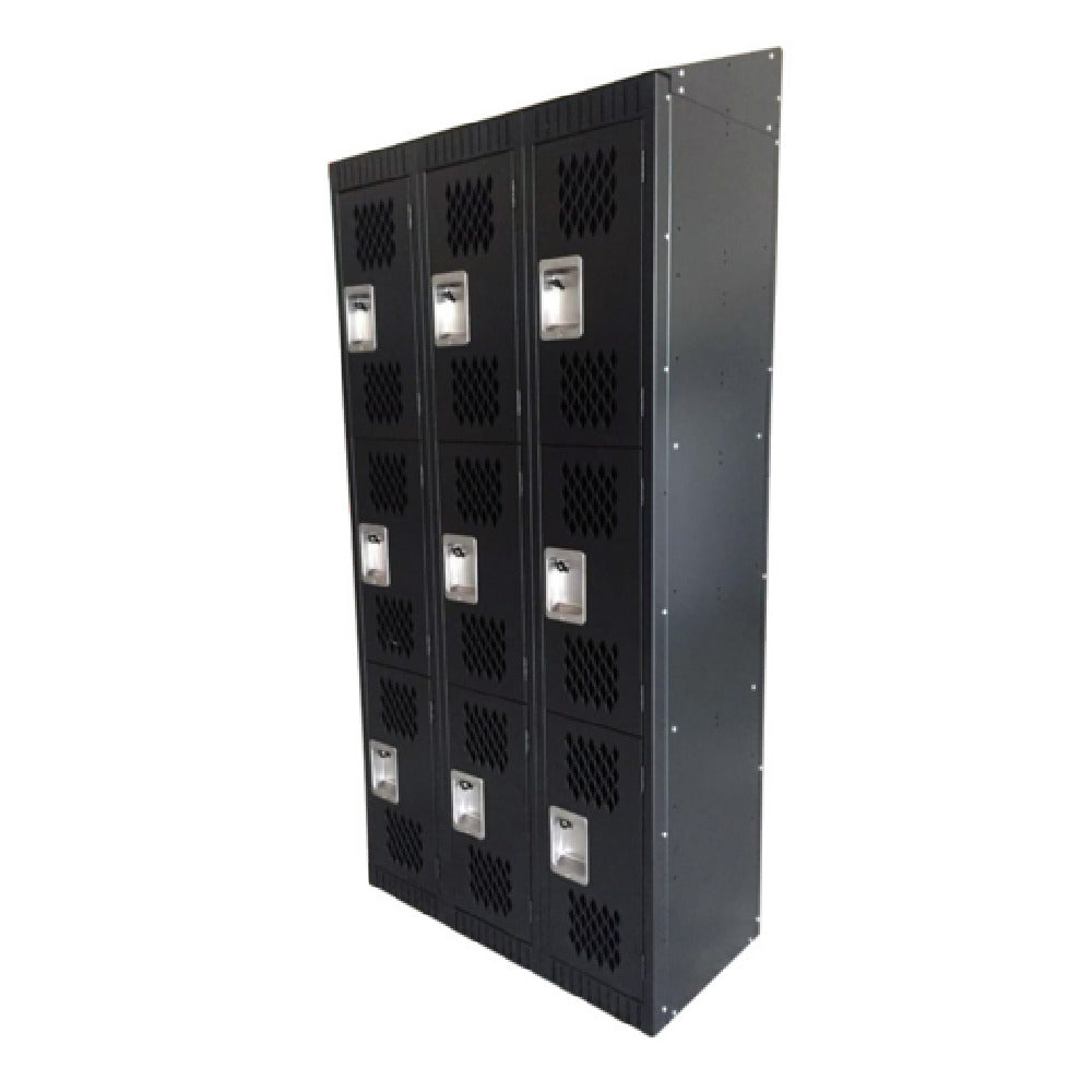 - Features 9 lockers in a 3-tier, 3-bank arrangement