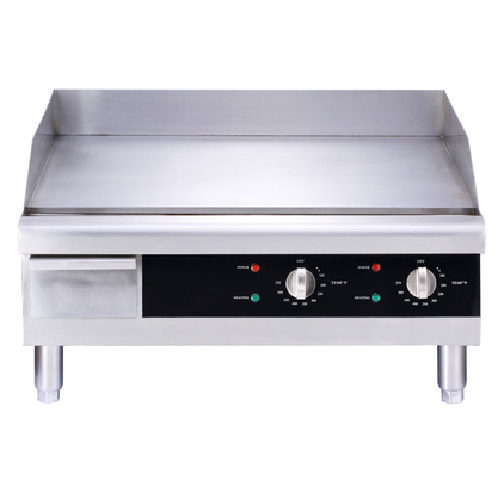 - Smooth 24"W x 15-1/2"D griddle plate for even cooking