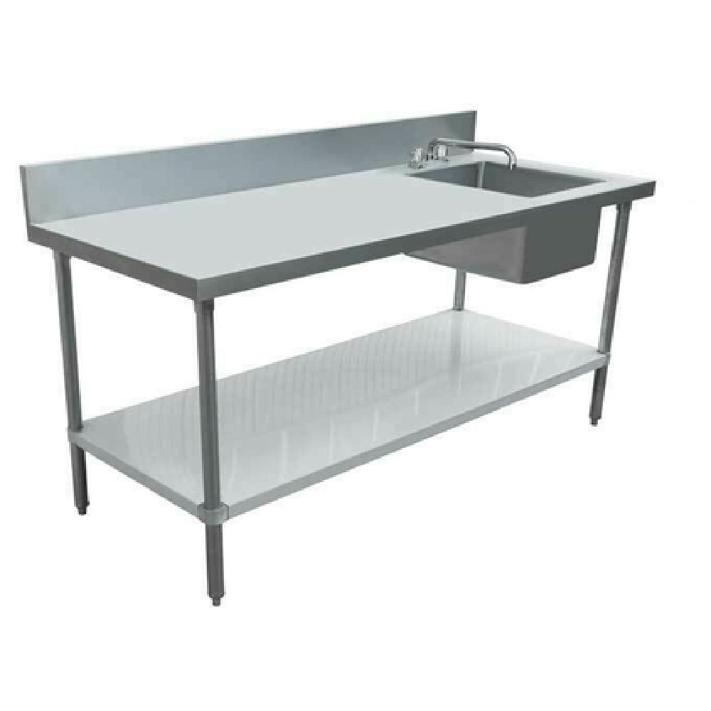 Omcan 43244 (43244) Work Table With Prep Sink 72"W X 30"D 18 Gauge 430 Stainless Steel Top & Backsplash