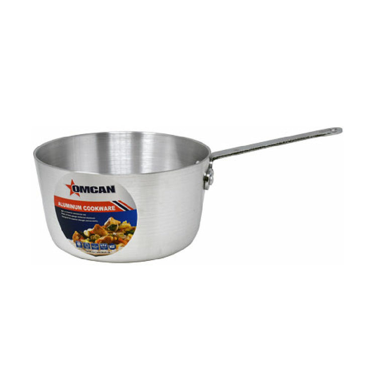 The Omcan 43343 (43343) Sauce Pan 2.5 Qt Aluminum is a versatile cooking tool designed to meet the needs of both professional chefs and home cooks alike. With a capacity of 2.5 quarts, it provides ample space for preparing sauces, soups, and other culinary creations. Constructed from high-quality aluminum, this sauce pan ensures excellent heat conductivity, allowing for even cooking and reduced hotspots. The lightweight nature of aluminum makes it easy to handle, while its durability ensures long-lasting performance in busy kitchen environments. The Omcan 43343 Sauce Pan's design is tailored for efficiency and reliability, making it a valuable addition to any kitchen setting. Whether used in a bustling restaurant kitchen or a home setting, this sauce pan's combination of size, material, and build quality make it a practical choice for a wide range of cooking applications. Its aluminum construction not only facilitates quick and efficient heat distribution but also ensures easy maintenance, making it an ideal piece of cookware for those seeking both performance and convenience. This product stands out for its balance of capacity and material benefits, serving as a reliable tool for cooking professionals and enthusiasts in various segments of the culinary industry.