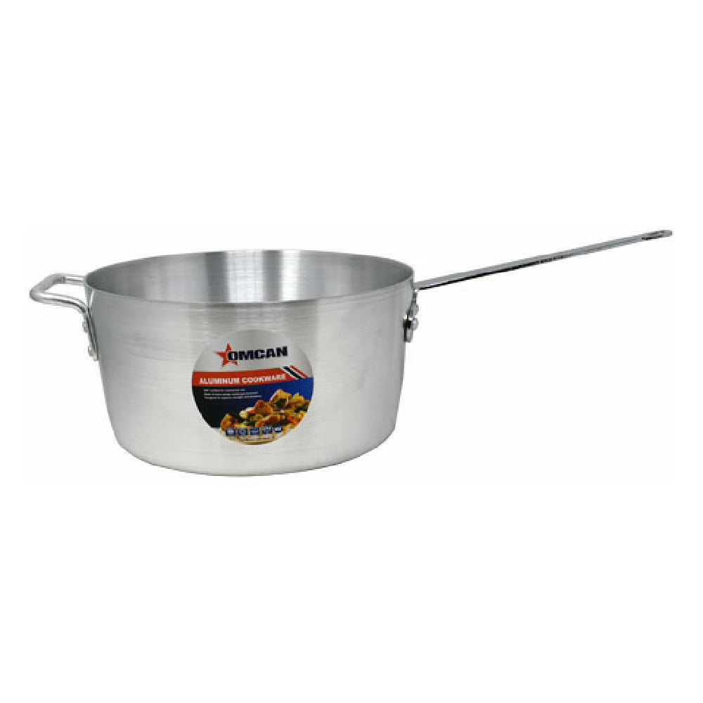 The Omcan 43349 (43349) Sauce Pan - 10.25 Qt Aluminum is a high-capacity kitchen essential designed for both professional and home chefs who require efficient and reliable cookware. This versatile sauce pan, with its generous 10.25-quart volume, is constructed from high-quality aluminum, which is known for its excellent heat conductivity and lightweight properties, ensuring even heat distribution for optimal cooking results. The Omcan 43349 is particularly suited for preparing large batches of sauces, stews, or soups, making it a valuable tool in commercial kitchens, catering services, and large family households. Its durable build ensures longevity and consistent performance, meeting the rigorous demands of busy kitchen environments. The aluminum material also facilitates quick and easy cleaning, a crucial feature for maintaining hygiene standards in any culinary setting. The Omcan 43349 (43349) Sauce Pan - 10.25 Qt Aluminum represents a pragmatic choice for those who value durability, efficiency, and precision in their cooking processes, fulfilling the diverse needs of the food service industry. It stands as a testament to Omcan USA's commitment to providing quality kitchen equipment that enhances culinary productivity.
