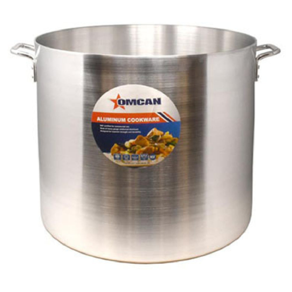 The Omcan 43374 (43374) Stock Pot is a high-capacity culinary essential, boasting an impressive 80-quart volume tailored for large-scale cooking needs in both commercial and industrial kitchens. With a diameter of 19-3/4 inches and an overall dimension of 23-1/2 inches by 17 inches in height, this stock pot is designed to accommodate substantial quantities, making it ideal for preparing soups, stocks, and stews in bulk. Constructed from durable aluminum, the pot ensures efficient heat distribution and retention, enhancing cooking performance. The inclusion of dual handles bolsters ease of handling, especially when dealing with large volumes of hot liquids. Certified by the NSF, this pot adheres to strict public health and safety standards, assuring users of its quality and reliability in demanding kitchen environments. Whether for a bustling restaurant, a catering service, or a large institution, the Omcan 43374 Stock Pot serves as a reliable vessel for high-volume cooking, combining size, durability, and safety to meet the diverse needs of culinary professionals.
