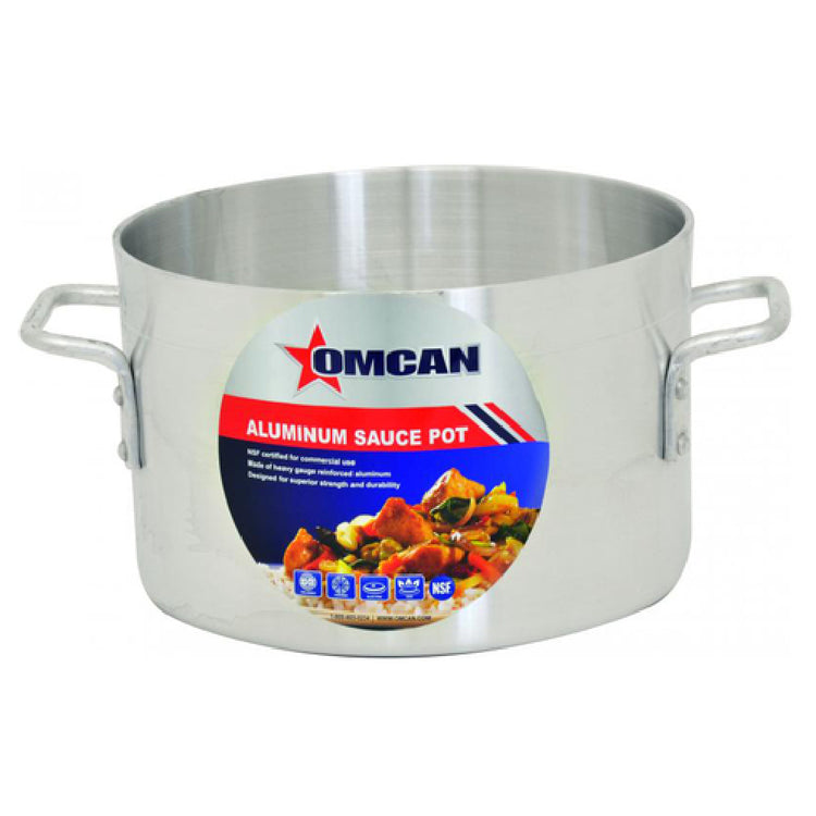 The Omcan 43391 (43391) Sauce Pot is a versatile culinary tool designed for professional kitchens and cooking enthusiasts alike, with a substantial capacity of 14 quarts. Measuring 11.8 inches in diameter and 7.5 inches deep, this sauce pot is ideal for preparing large volumes of sauces, soups, and stews. Its aluminum construction ensures excellent heat distribution and retention, which is critical for even cooking. The Omcan 43391 features dual riveted handles, providing stability and ease of handling, even when the pot is full. This sauce pot is NSF certified, highlighting its compliance with rigorous public health and safety standards, making it a reliable choice for commercial kitchens that prioritize hygiene and durability. Its robust design is well-suited for restaurants, catering services, and institutional kitchens where efficiency and performance are paramount. The Omcan 43391 sauce pot combines functionality with professional-grade quality, making it a valuable asset for chefs seeking reliable cookware that can withstand the demands of a busy kitchen environment.