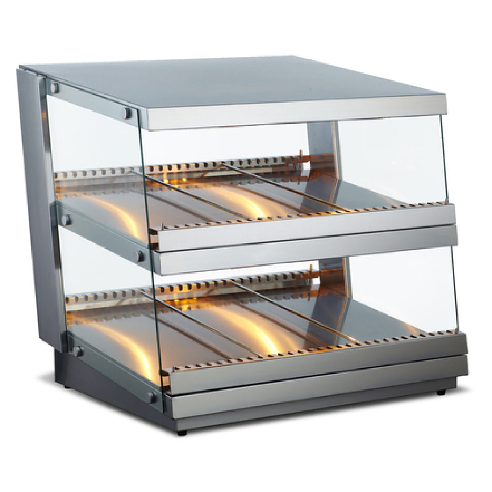 The Omcan 43465 (DW-CN-0085) Heated Pass-Through Station Counter Top is a versatile unit with a 3 cubic feet (85 liters) capacity, designed to provide efficient warming solutions across various industry segments such as food service and catering. With a temperature range of 86°F to 185°F, it features an adjustable thermostat for precise heat control, ensuring optimal conditions for a variety of food items. Each shelf is equipped with independent heat and light controls, allowing for tailored settings to suit specific requirements. The station includes adjustable divider rods for flexible organization of items. Its construction features tempered glass sides and a stainless steel exterior, combining durability with clear visibility of contents. The unit is stabilized by fixed rubber feet and operates with a power consumption of 1800 watts, utilizing a 120v/60/1-ph electrical supply and drawing 15 amps. Additionally, the unit is fitted with a cord and a NEMA 5-15P plug. It holds certifications from cETLus and ETL-Sanitation, underscoring its compliance with stringent safety and hygiene standards. This heated pass-through station is a high-performance, reliable choice for professionals seeking to maintain temperature consistency and quality in their food service operations.