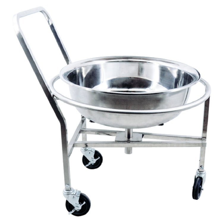 The Omcan 43469 Roto Cart is a versatile solution for various industry needs, characterized by its precise dimensions of 31"W x 36.5"D x 39.75"H. Crafted from durable stainless steel, this cart promises resilience and longevity in demanding environments, making it suitable for sectors that prioritize hygiene, such as hospitality and healthcare. The stainless steel construction ensures not only durability but also easy maintenance and cleaning, vital for industries where sanitation is paramount. It features a three-wheeled design, with two of the wheels equipped with brakes, providing both mobility and stability, a crucial aspect for dynamic workspaces that require frequent repositioning or stationary stability during operation. This Roto Cart is engineered to support heavy-duty usage, and its welded wheels enhance its structural integrity, ensuring it can withstand the rigors of daily use. The Omcan 43469's robust build and intelligent design make it an indispensable tool for professionals seeking reliable and efficient storage and transport solutions within their operations. Whether in a busy kitchen, a bustling warehouse, or a medical facility, this cart's combination of mobility, stability, and durability delivers exceptional value across various market segments.