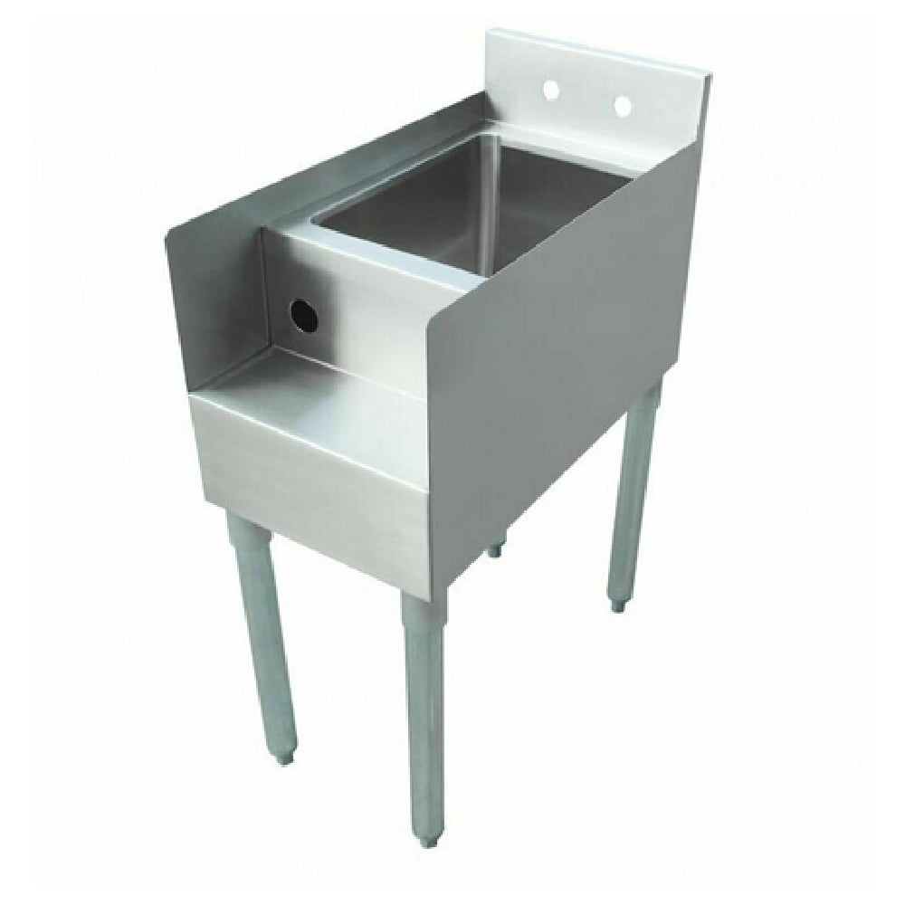 The Omcan 43473 (43473) Blender Station Freestanding with Dump Sink is a meticulously crafted unit designed for high-efficiency kitchens. Featuring a 9" x 9" x 4" deep bowl, this blender station is perfect for handling various kitchen tasks with ease. Its recessed step design, complemented by sides and a hat channel, ensures stability and ease of use. The unit comes with an open back and bottom, which enhances accessibility and installation flexibility. A 1" lps drain facilitates efficient liquid disposal, while the 3" backsplash provides an additional layer of protection against spills. Constructed from 18 gauge, 304 stainless steel, this blender station is built for durability and resistance to corrosion, making it a reliable choice for commercial environments. The galvanized legs with bullet feet ensure robust support and stability during operation. This freestanding unit is ideal for restaurants, bars, and cafes that require a dedicated station for blending tasks, offering a blend of functionality and durability. Its high-quality materials and thoughtful design make it a standout choice for professionals seeking a reliable and long-lasting addition to their kitchen setup.