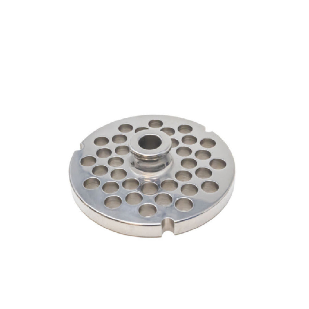 Omcan 43565 (43565) European Style #32 Stainless Steel Plate With Hub 10mm (3/8") Three Notches/ Round