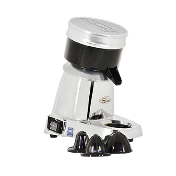 The Omcan 44025 (SANTOS 11C) Santos® Citrus Juicer With Lever - 32 quarts/hr is a precision-engineered appliance tailored for commercial use, with the capability to efficiently juice citrus fruits at a rate of 32 quarts per hour. It features an automatic pulp ejection system that ensures smooth operation and ease of cleaning. The juicer's silent motor operates at 1800 RPM, powered by a 0.35 horsepower motor, providing robust performance while maintaining a quiet working environment. A stainless steel and aluminum body enhances durability and offers a sleek, professional look that is both functional and aesthetically pleasing. Designed for convenience, it includes a lever mechanism for effortless operation, making it suitable for high-demand environments such as restaurants, juice bars, and cafes. With a cord and NEMA 5-15P plug, it operates on a 120v/60/1-ph electrical connection, ensuring compatibility with standard outlets. Certified by CE, RoHS, and NSF, the juicer meets stringent safety and environmental standards. Handmade in France, this juicer represents a blend of traditional craftsmanship and modern efficiency, appealing to professionals seeking a reliable and durable solution for citrus juicing needs.