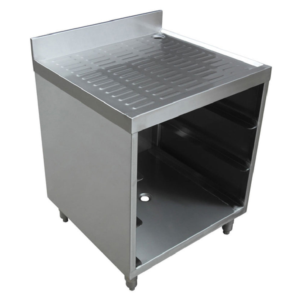 The Omcan 44596 (44596) Glass Rack Storage Unit is a meticulously crafted solution designed for the efficient organization of glassware in various professional settings. This unit features a corrugated drainboard top coupled with a practical 1-inch drain, ensuring optimal drainage and cleanliness. Measuring 24 inches in width, 23 inches in depth, and 33 inches in height, it is thoughtfully sized to fit within diverse workspace environments. The construction of this unit is grounded in durability, using 18-gauge 304 stainless steel, recognized for its resilience and resistance to corrosion. The open front cabinet base allows easy access and maximizes storage capacity, while the 3-inch high backsplash serves to protect surrounding surfaces from water splashes, maintaining a tidy and efficient workspace. The inclusion of a 1-inch drain at the bottom of the unit underscores its commitment to maintaining hygiene and ease of maintenance. Ideal for industries ranging from food service to hospitality, the Omcan 44596 Glass Rack Storage Unit is poised to deliver reliability and function, making it a valuable addition to any establishment requiring robust glassware management solutions.