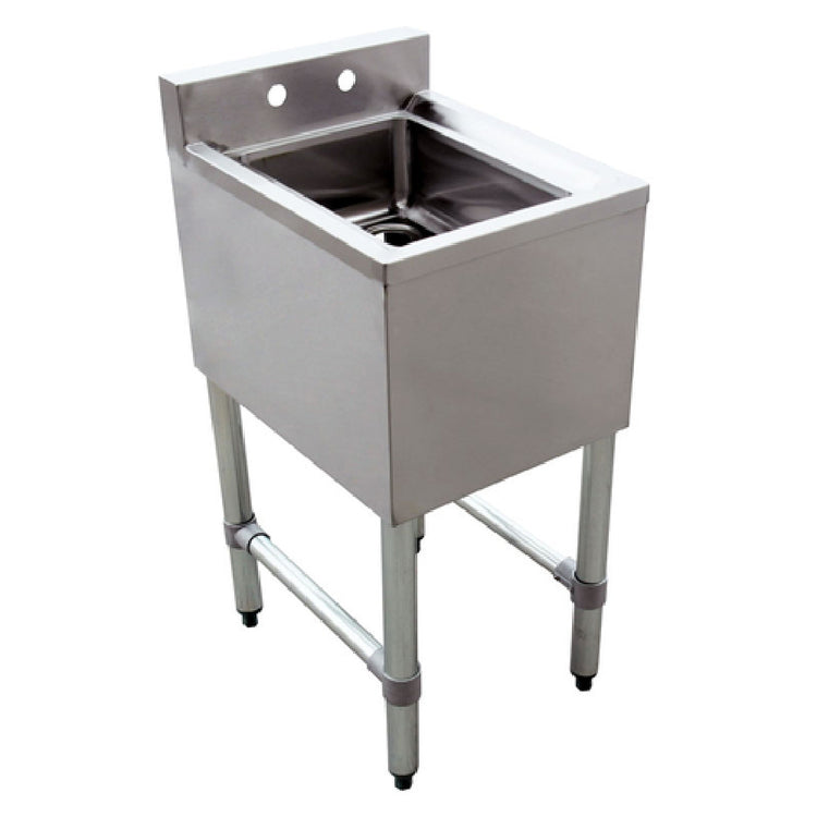 The Omcan 44600 (44600) Under Bar Sink is designed to enhance efficiency in commercial bar settings, providing a compact yet practical solution for spaces where functionality is key. Featuring a single bowl measuring 14 inches front to back, 10 inches wide, and 10 inches deep, this sink is perfect for quick rinsing tasks and efficient space utilization in busy environments. The design includes two faucet holes, each with a 1-inch diameter, strategically spaced 4 inches apart to accommodate a range of faucet styles, thus offering flexibility in installation. A 3-inch backsplash is incorporated into the design, helping to protect walls from water damage and ensuring cleanliness. The sink is constructed from durable stainless steel, known for its resistance to corrosion and ease of cleaning, which is crucial for maintaining hygiene standards in hospitality venues. Supporting the structure are galvanized H-frame legs with adjustable bullet feet, providing stability and allowing for height adjustments to suit different installation needs. The Omcan 44600 (44600) Under Bar Sink is a robust and versatile solution, ideal for bars, restaurants, and cafes aiming to optimize their under-bar space without compromising on quality and durability.