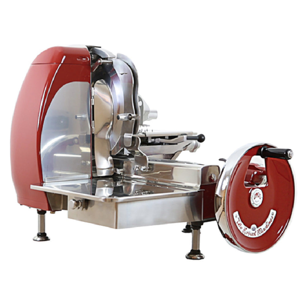 The Omcan 46088 Food Slicer Electric 14.5" Blade is a meticulously engineered device designed to cater to the needs of various segments within the food industry. This electric food slicer features a substantial 14.5-inch blade, providing precision and efficiency in slicing operations. The slicer is belt-driven, ensuring robust and consistent performance, making it suitable for high-volume environments such as delis, butcheries, and restaurants. Its gravity-fed design enhances user convenience, allowing for seamless and effortless slicing, which is particularly advantageous in fast-paced food service settings. The horizontal operation of the slicer facilitates ease of use and ensures uniform slices with each pass, contributing to consistent product quality. The Omcan 46088 is ideal for businesses that require reliable and efficient food slicing solutions, as its design and features are tailored to enhance productivity and maintain high standards of food preparation. With its combination of technical precision and user-friendly features, this food slicer stands out as a valuable tool for professionals seeking to optimize their slicing processes.