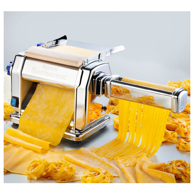 The Omcan 46292 (PM-IT-0037) Pasta Sheeter Electric is designed with precision and efficiency in mind, featuring an 8.66-inch roller length to accommodate various pasta-making needs. Engineered with a maximum roller opening of 2 inches, this pasta sheeter allows for versatile pasta thickness customization, catering to both novice and professional chefs. The stainless steel body ensures durability and hygiene, making it a robust choice for any kitchen setting. Powered by a 0.25 HP motor and operating at 190 watts, this pasta sheeter is highly efficient, with a power requirement of 110v/60/1-ph. The unit comes with a cord and NEMA 5-15p plug, simplifying installation and operation. Proudly made in Italy, the Omcan 46292 showcases the quality craftsmanship and engineering excellence synonymous with Italian manufacturing. While cutters are sold separately, this pasta sheeter serves as an indispensable tool for artisanal pasta makers, restaurant chefs, and culinary enthusiasts alike, providing consistent results and enhancing pasta-making efficiency. Its compact design and reliable performance make it a valuable addition to any food service operation seeking to elevate their pasta production capabilities.