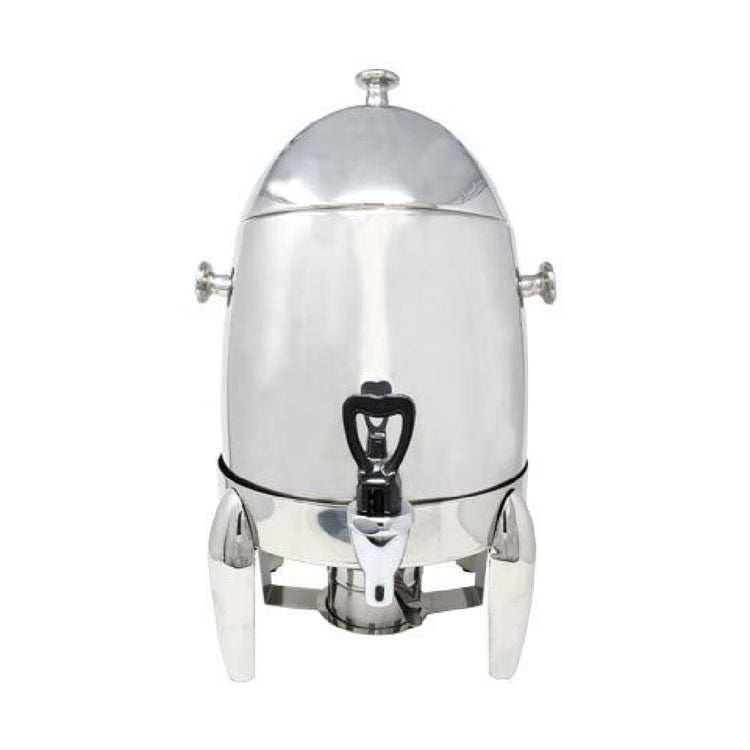 The Omcan 46449 (46449) Coffee Urn is a highly functional appliance designed to cater to the needs of various market segments in the food service industry. With a generous capacity of 12 liters or 12.68 quarts, this coffee urn is adept at handling large volumes, making it ideal for hospitality settings, catering services, and office environments where high quantities of coffee are demanded. Constructed from durable stainless steel, it ensures longevity and ease of cleaning, a crucial factor for environments with frequent use. The chrome legs not only add a touch of elegance but also provide stable support, ensuring the urn remains secure during operation. This model utilizes canned heat as its heat source, offering a reliable and consistent coffee-heating solution for situations where electric heat sources are impractical. The Omcan 46449's design integrates functionality and durability, making it a valuable asset for professionals seeking a dependable coffee service solution. Its robust construction and large capacity underline its suitability for any business in need of an efficient and effective coffee dispensing system, ensuring satisfaction for both operators and consumers alike.