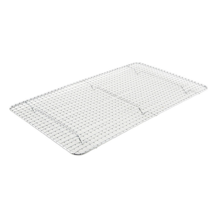 The Omcan 46460 - Sheet Pan Grate is a full-size stainless steel wire apparatus designed to meet the demanding needs of professional kitchens and bakeries. Engineered with durable stainless steel, this grate is built to withstand the rigors of frequent use while maintaining its structural integrity and resisting corrosion. Its full-size dimensions offer ample space, making it an ideal solution for cooling baked goods or draining fried foods efficiently. The stainless steel wire construction ensures even airflow, promoting optimal cooling and preventing sogginess in baked items, a critical feature in high-volume baking environments. This sheet pan grate is versatile and can be used across various sectors within the culinary industry, from large-scale commercial kitchens to small bakeries, due to its robust design and functionality. Its straightforward design ensures ease of cleaning and maintenance, contributing to high standards of hygiene essential in food preparation areas. Whether it's used for cooling, draining, or roasting, the Omcan 46460 - Sheet Pan Grate provides a reliable and effective tool for culinary professionals seeking quality and durability in their kitchen equipment.