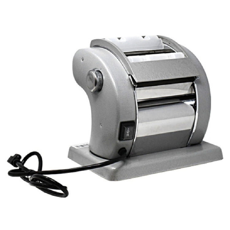 The Omcan 46587 (PM-CN-0150-S) Pasta Sheeter Electric with a 5-3/4" Roller Width is a versatile and essential tool for culinary professionals and pasta enthusiasts alike. This pasta sheeter features nine thickness settings, allowing users to achieve the perfect dough consistency for a variety of pasta dishes. Equipped with two cutters - one narrow and one wide - it provides flexibility in pasta style and presentation. Its electric operation ensures consistent and efficient sheeting, powered by 120v/60/1-ph, and it comes with a convenient on/off switch for easy control. The sleek silver design adds a modern aesthetic to any kitchen setting. Designed for compatibility, it includes a cord with a NEMA 5-15P plug, and it is cULus certified, ensuring that it meets safety and performance standards. This pasta sheeter is ideal for restaurants, catering services, and home kitchens that demand high-quality pasta production with precise control over dough thickness and cut. Its compact roller width of 5-3/4" makes it suitable for smaller workspaces without compromising on functionality. The Omcan 46587 (PM-CN-0150-S) Pasta Sheeter combines practicality with advanced features, making it a valuable addition to any gastronomic establishment focusing on pasta craftsmanship.
