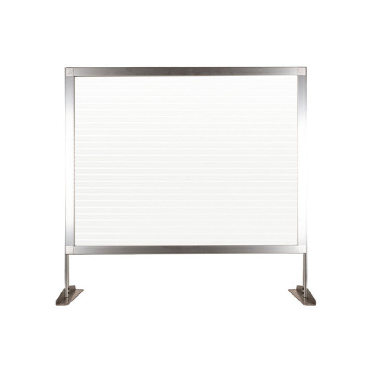 The Omcan 46765 (46765) Social Station Panel Countertop is a versatile and practical solution for various commercial and professional environments. Measuring 46 inches in width and standing at 32.5 inches in height, this unit is designed to facilitate social distancing and safe interactions in public or professional spaces. The panel is constructed from clear-fluted polycarbonate, a material known for its durability and strength, ensuring long-lasting performance even in high-traffic areas. Its transparency does not compromise visibility, allowing for clear communication while maintaining a protective barrier. The innovative design is well-suited for businesses in need of temporary or permanent social distancing measures, including restaurants, retail settings, and office spaces. This product can be easily integrated into existing countertops or service areas, providing a seamless yet effective solution for enhancing safety protocols. The Omcan 46765 Social Station Panel is an essential tool for environments requiring adaptable and secure partitioning, highlighting its relevance in today's health-conscious market.