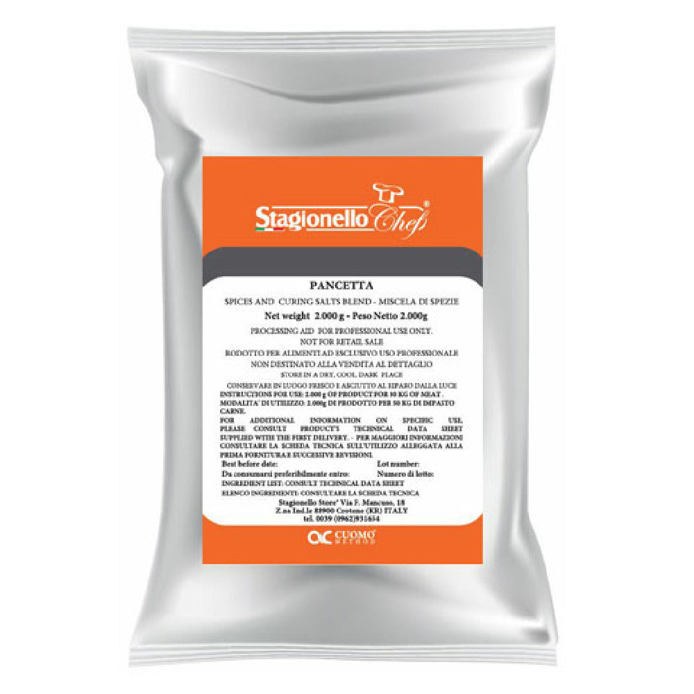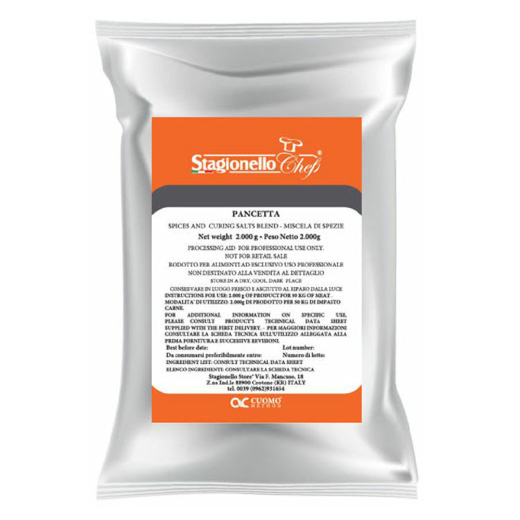 The Omcan 47001 (47001) Curing Salts and Spice Blends for Long Fermentation Salami Pancetta 2 kg/bag is a specialized product designed for those in the meat curing industry seeking precise and consistent results in long fermentation processes. Each bag contains 2 kg of curing salts and spice blends, meticulously formulated to enhance the flavor and texture of artisanal salami and pancetta. This product is particularly valuable for professional charcuterie artisans and meat processing facilities looking to maintain high standards of quality and flavor consistency. The Omcan 47001 blend is engineered to support the development of the unique taste profiles associated with traditional Italian meats, ensuring that each batch meets the expectations of discerning consumers. Its balanced composition aids in the controlled fermentation process, which is crucial for achieving the desired savory complexity in long-fermented meats. By utilizing this blend, users can expect a reliable curing process that emphasizes safety and flavor integrity, thereby enhancing the reputation of their products in the marketplace. This product is an indispensable tool for those focused on crafting superior quality cured meats with precision and consistency.