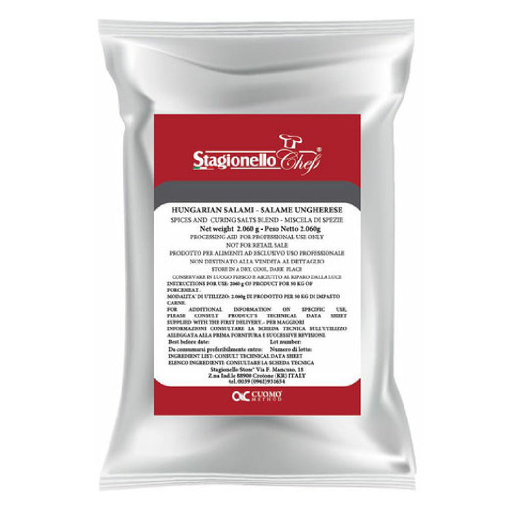 Omcan 47003 (47003) Curing Salts and Spice Blends for Rapid Fermentation Salami Hungarian Salami 2.06 Kg / Bag is a specialized product designed for enhancing the fermentation process in salami production. This product is meticulously crafted to offer a precise blend of curing salts and spices, specifically formulated for Hungarian salami, ensuring rapid and efficient fermentation. With a package size of 2.06 kg per bag, it provides ample quantity for professional culinary applications, catering to the needs of large-scale production environments. The Omcan 47003 blends are particularly valuable for manufacturers seeking consistency and quality in their salami products, helping to achieve the desired flavor profiles and textures. Its targeted formulation not only facilitates faster fermentation but also helps in preserving the traditional taste and aroma associated with Hungarian salami. Ideal for use in commercial kitchens, meat processing facilities, and gourmet food production, this product stands out as an essential ingredient for industry professionals aiming to optimize their curing processes. By incorporating Omcan 47003 into their production line, businesses can enhance product quality while also increasing efficiency, making it a versatile choice for various segments within the food processing industry.