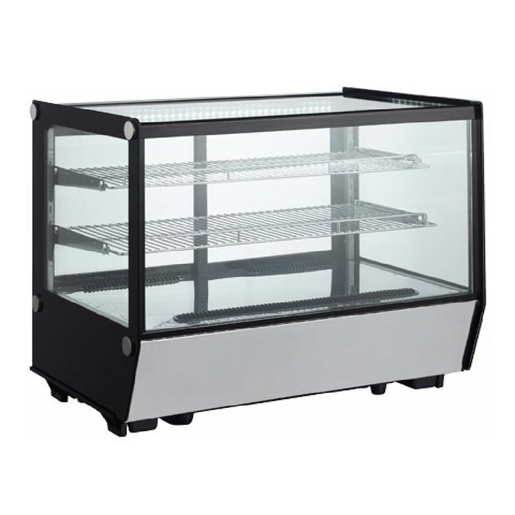 The Omcan 47278 (RS-CN-0160-5) Refrigerated Display Case Countertop 34-3/5"W is a full-service refrigeration unit designed to showcase products while maintaining optimal freshness. This refrigerated display case is ideal for businesses seeking to present their products with a blend of style and functionality. With a generous capacity of 5.65 cubic feet, it accommodates a wide range of items, perfect for bakeries, cafes, and delis. The square, flat front glass provides an unobstructed view of the contents, while the glass sides enhance visibility from multiple angles. It is equipped with a digital temperature control system that maintains a temperature range of 32°F to 53.6°F (0°C to 12°C), ensuring the preservation of perishables. The unit includes two shelves, offering ample display space, and sliding rear doors for easy access. Powered by a 160-watt system using R290 Hydrocarbon refrigerant, it operates efficiently with a 110v/60/1-ph power supply and 3 amps, compatible with NEMA 5-15P electrical configurations. Certified by cETLus and ETL Sanitation, it assures compliance with rigorous safety and sanitation standards. Shipped on a pallet, this refrigerated display case represents a robust and reliable solution for maintaining product quality and presentation in various retail environments.