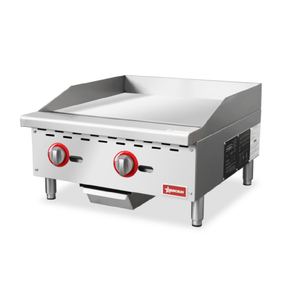 - 3/4" thick polished steel griddle plate for even heat distribution