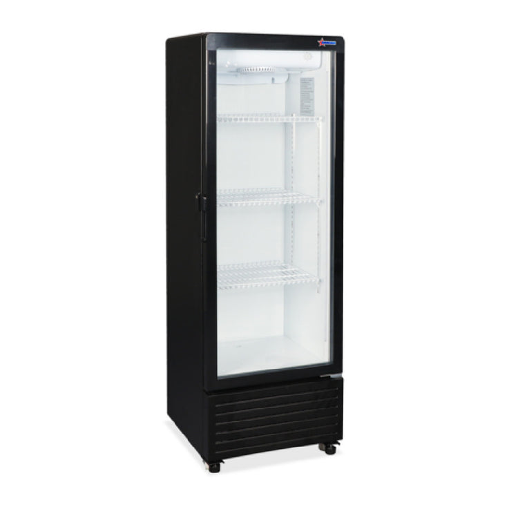 The Omcan 47563 (RE-CN-145) Refrigerator Reach-in One-section is a compact yet efficient refrigeration unit ideal for a variety of market segments, including commercial kitchens, convenience stores, and foodservice applications. Featuring a bottom-mount self-contained refrigeration system, it boasts a 4.9 cubic foot interior capacity, providing ample space for storage. The temperature range of 32°F to 50°F (0°C to 10°C) ensures versatility in cooling applications. This unit is equipped with a self-closing hinged glass door that is lockable for added security, and its sleek design includes a white painted interior and a painted stainless steel exterior in an attractive black finish. The refrigerator includes three adjustable coated steel shelves, allowing for customizable storage configurations. Enhanced visibility is provided by a side LED light, and the frost-free operation ensures low maintenance. Mobility is made easy with the inclusion of casters, while the unit operates efficiently using R600a refrigerant, consuming just 130 watts of power at 110v/60/1-ph with a 1.3 amp draw. It comes with a NEMA 5-15P plug for convenient installation. Certified by cETLus and ETL-Sanitation, the Omcan 47563 is shipped on a pallet, ensuring it arrives safely and ready for integration into your operations.