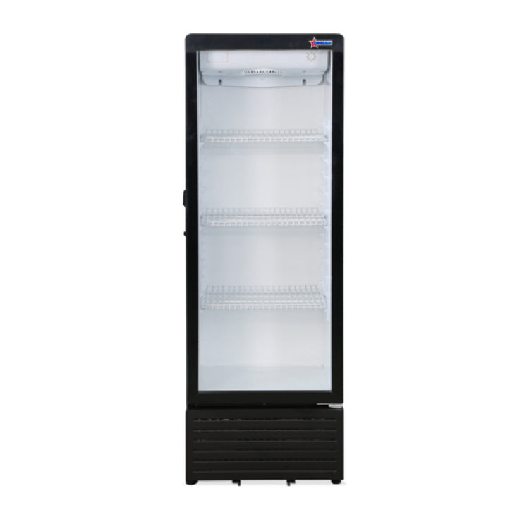 The Omcan 47586 (RE-CN-215) Refrigerator Reach-in One-section is a highly efficient refrigeration unit designed for commercial use, particularly appealing to restaurants, cafes, and food service establishments. With a 7.7 cu.ft interior capacity, this refrigerator provides ample space for storing perishable items. The unit operates within a temperature range of 32°F to 50°F (0°C to 10°C), ensuring optimal preservation conditions. Its bottom-mount self-contained refrigeration system utilizes R600a refrigerant, delivering energy-efficient cooling with 130-watt power consumption. Equipped with a self-closing hinged glass door, the refrigerator secures contents with a lockable feature and enhances visibility with a side LED light, making it easy for users to locate items quickly. The interior features four adjustable coated steel shelves, offering customizable storage options to accommodate various product sizes. The unit operates frost-free, reducing maintenance efforts and ensuring consistent performance. Constructed with a white painted interior and a painted stainless steel exterior in black, it combines durability with a sleek design. Mobility is facilitated by casters, making it convenient to reposition as needed. Certified by cETLus and ETL-Sanitation, the Omcan 47586 complies with safety and sanitation standards, making it a reliable choice for food service professionals.