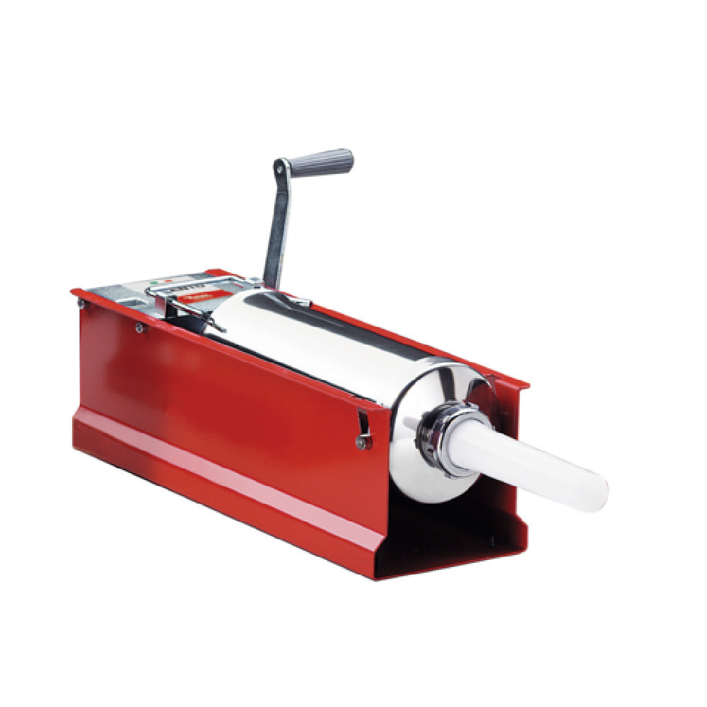 Omcan USA, 47715, (47715) Trento Sausage Stuffer, manual, 2-speed horizontal direct drive, 11 lbs. (5 kg) capacity, stainless steel cylinder, enameled steel sides, red, Made in Italy