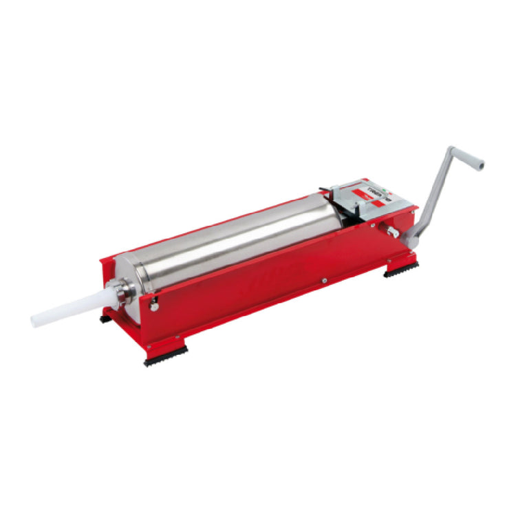 Omcan USA, 48162, (48162) Trento Sausage Stuffer, manual, 2-speed horizontal direct drive, 22 lbs. (10 kg) capacity, stainless steel cylinder, enameled steel sides, red, Made in Italy