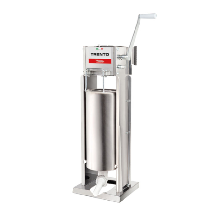 Omcan USA, 48170, (48170) Trento Sausage Stuffer, manual, 2-speed vertical & horizontal gear drive, 33 lbs. (15 kg) capacity, stainless steel cylinder & sides, Made in Italy