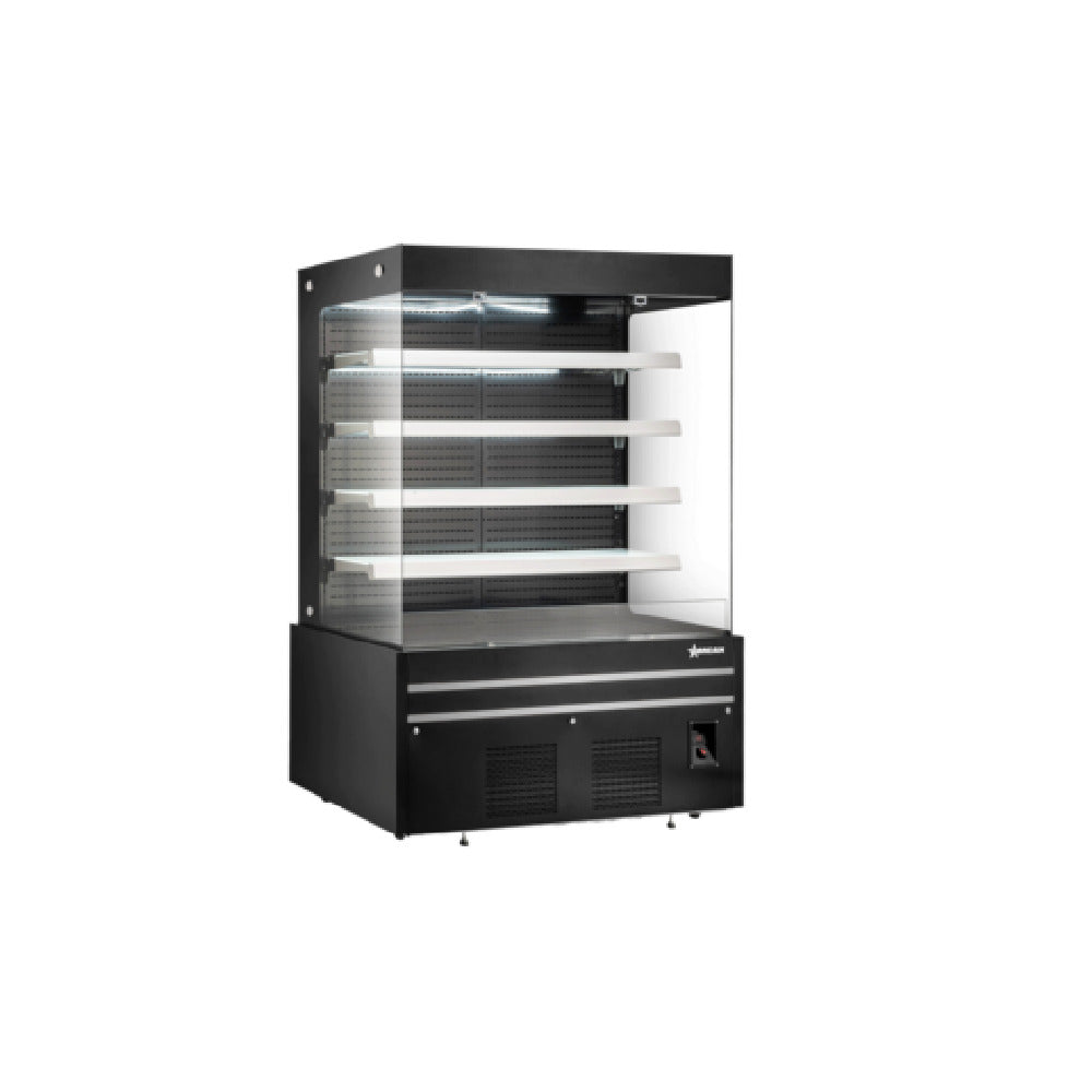 Omcan USA, 48379, (RS-CN-1500) Grab-and-Go Refrigerated Showcase, open, 60"W, 33.9 cu.ft. (960 L) capacity, 35.6° to 50°F temperature range, digital temperature controller & display, LED interior lighting, (4) adjustable shelves, automatic defrost, pull-down night curtain, self-contained refrigeration, (4) casters (2 with brakes), R290 Hydrocarbon refrigerant, 1880 watts, 110-120v/60/1-ph, 11.0 amps, cETLus, ETL-Sanitation