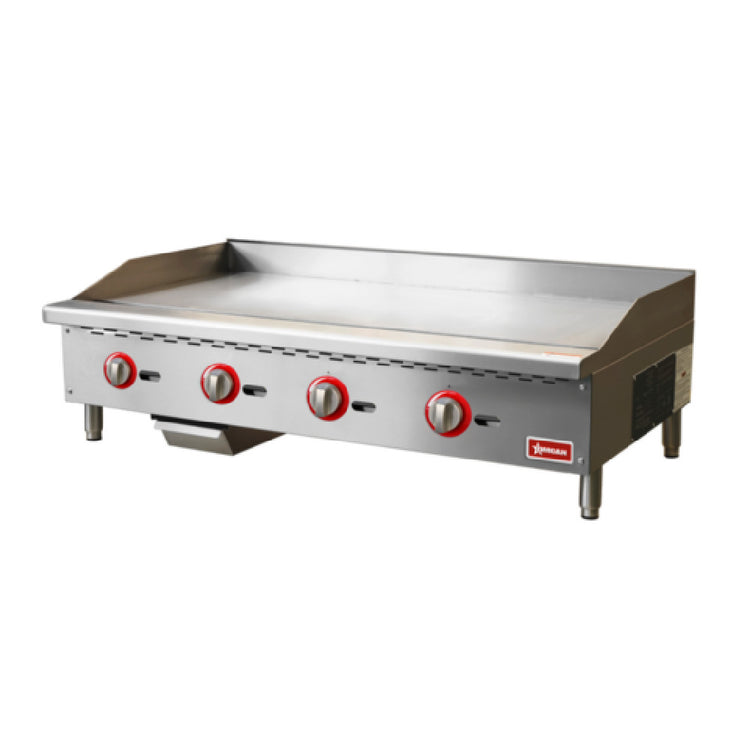 Omcan USA, 48519, (CE-CN-G48-M) Griddle, countertop, natural gas, 48"W cooking area, 3/4" thick griddle plate with standing pilots, (4) burners, manual control, removable grease drawer, stainless steel construction, adjustable non-skid feet, 120,000 BTU, cETLus, ETL-Sanitation (includes LP conversion kit) (shipped on pallet)
