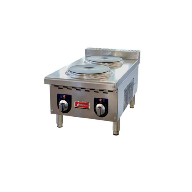 Omcan USA, 48556, (CE-CN-EHP15 208) Hot Plate, electric, countertop, 12"W, (2) 9" dia. round plate elements, solid top, infinite heat controls, adjustable stainless steel feet, 4 kW, 208v/60/1-ph, 16.7 amps, NEMA 6-30P, cETLus, ETL-Sanitation