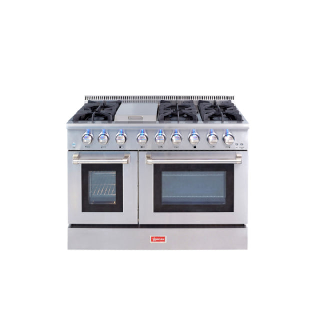 Omcan USA, 48596, (CE-CN-4808U) Commercial Range, natural gas, 48" W, (6) sealed burners, continuous grates, (1) stainless steel griddle, (1) 18" standard oven, (1) 30" convection oven, infrared broil burner, automatic re-ignition, 135,000 BTU, 120v/60/1ph, NEMA 5-15P, cCSAus