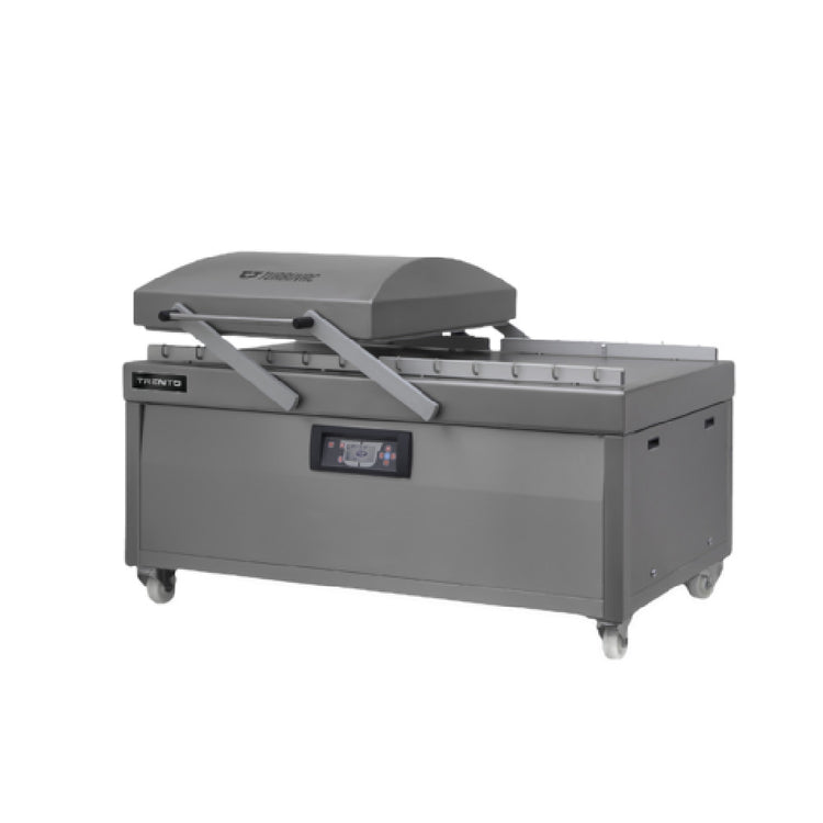 The Omcan 50001 (VP-NL-0300-L) Turbovac Vacuum Packaging Machine Double Chamber is a high-performance packaging solution designed to enhance efficiency in various industrial settings. Featuring a double chamber design, this machine optimizes packaging productivity, making it ideal for businesses that require high-volume vacuum sealing capabilities. The machine boasts four seal lengths of 920mm, providing ample space for large-scale packaging tasks. With a 32-inch working surface, it facilitates easy handling and processing of products. The advanced LCD digital control unit allows precise settings for either sensor or time control, offering flexibility and accuracy to meet different packaging requirements. Constructed from stainless steel, the machine ensures durability and easy maintenance, maintaining high standards of hygiene crucial for food and other sensitive industries. The Omcan 50001 vacuum packaging machine is cMETus certified, indicating its compliance with North American safety standards. Delivered on a pallet for secure transportation, this machine is a valuable asset for any business looking to improve packaging efficiency and product shelf life through reliable vacuum sealing technology.