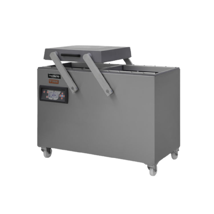 The Omcan 50002 (VP-NL-0063-L) Turbovac Vacuum Packaging Machine Double Chamber is a high-performance packaging machine designed for industries requiring efficient and reliable vacuum sealing solutions. This advanced machine features a double chamber design with four sealing bars, each offering a 600mm seal length, enhancing productivity by allowing simultaneous packaging processes. It is equipped with an LCD digital control unit that provides user-friendly operation and precise control over packaging parameters. The machine offers two control options: sensor control for consistency and precision, and time control for customizable operation. Constructed with an aluminum cover, it ensures durability and longevity in demanding environments. Operating on a voltage range of 190-240V/60/3-phase, it is engineered for robust performance and efficiency. The Omcan 50002 is cMETus certified, ensuring compliance with safety and electrical standards. Shipped on a pallet for secure handling and transport, this vacuum packaging machine is specifically suited for sectors such as food processing, pharmaceuticals, and other industries that require reliable vacuum packaging solutions. Its double chamber design and versatile control options make it an invaluable asset for businesses looking to optimize their packaging processes, ensuring product freshness and extending shelf life.